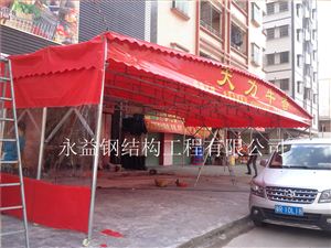 伸缩雨棚厂家,订做伸缩篷,活动仓库帐篷。各式推拉伸缩雨棚、活动仓库帐篷,款式五彩缤纷、用料考究、集遮阳、防雨、装饰、宣传广告于一体。有效的阻挡阳光,降低室内温度,减少空掉的使用频率,达到经济效益。推拉雨棚厂家直销,推拉式,打开方便、骨架宽大可做到几十米、适合货物存放、可以起到防雨防晒、材质阻燃、安全放心。折叠收放美观大方、采 用螺穿式制作方式,方便打包运输,安装简易快捷,还可以印刷广告logo。
